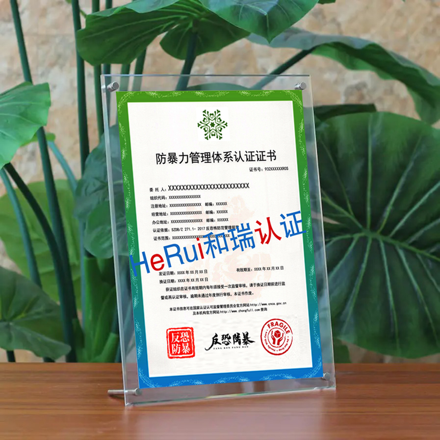 综上所述,防暴力管理体系认证证书对保安公司而言是一项重要的安全认证,它不仅能够保障保安公司客户的员工安全,还能提升保安公司的整体形象和市场竞争力。保安公司应当积极采取措施,通过建立和完善相应的管理制度,获取这一认证,从而在激烈的市场竞争中稳固自己的地位。
